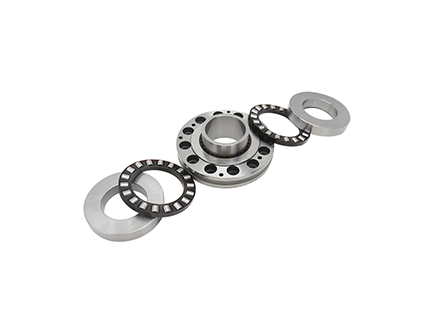 滾針/推力圓柱滾子軸承包括一個加厚的外圈、滾針保持器組件、滾針內圈、兩個推力圓柱滾子保持器組件和兩個推理軸圈,相當于一套滾針軸承和兩套推力圓柱滾子軸承的組合軸承,兩個推力圓柱滾子軸承中心和滾針軸承中心重合。